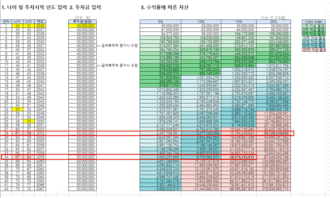 STEP4. 수익률에 따른 은퇴 가능 나이