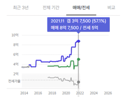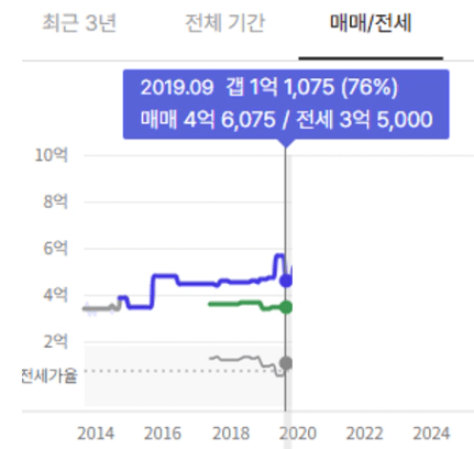 상승으로부터 1년 뒤 매도가격에서 4억이 오른 최고점을 찍었습니다.