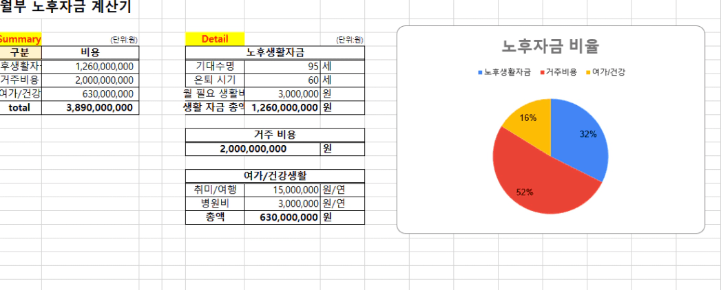 필요한 노후 자금 합계 ▶ 총 38억 9천 만원