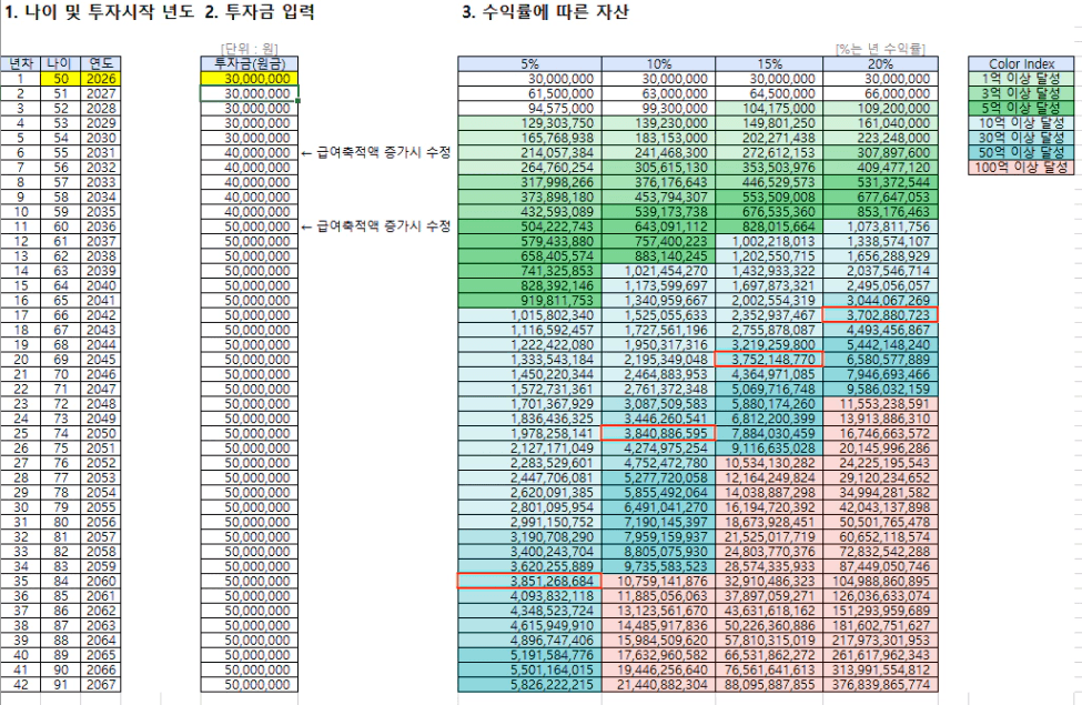 STEP4. 수익률에 따른 은퇴 가능 나이