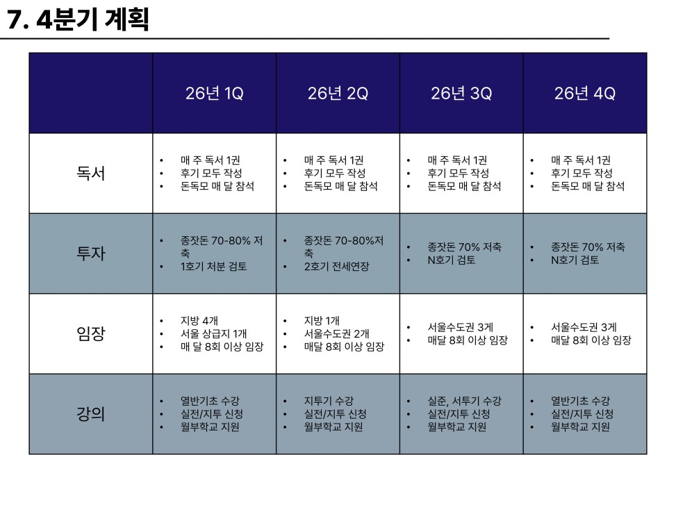 덴버님! 😊 2호기 이후 잠시 쉬셨다가 이번에 열기 수강하시면서 다시 월부 환경으로 들어오신 과정이 인상 깊게 느껴졌습니다. 비전보드 작성하시면서 여러 생각들이 교차되셨을 것 같아요. 많은 분들이 쉬어도 다시 돌아오면 된다고 말씀하시는데 덴버님께서 그 모습을 직접 보여주고 계신 것 같다는 생각이 들었습니다. 앞으로 세우신 26년 목표도 꼭 이루시길 진심으로 응원하겠습니다🩷