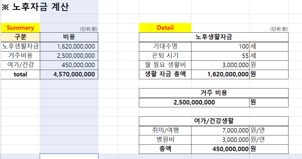 필요한 노후 자금 합계 ▶ 총 45억 7천 만원