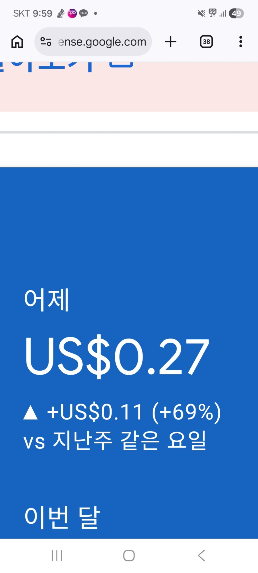 지금 내 수준의 글과 글의 양으로 이 정도의 수익이 매일 나오는걸 확인.