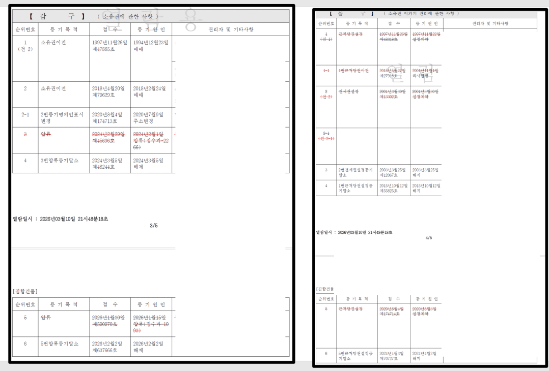 내일 본계약 예정인데 등기부등본 갑구에서 압류 말소 이력을 확인했습니다.