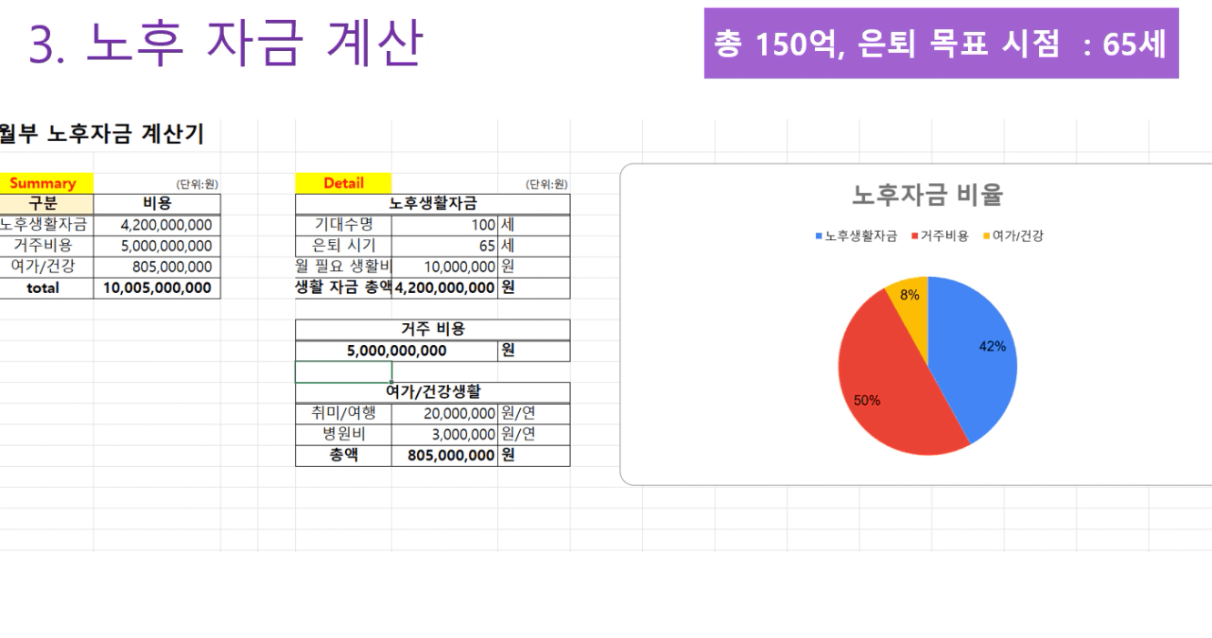꿈을 실현하기 위해 필요한 노후 자금은 얼마인지 예산을 계산해보세요.