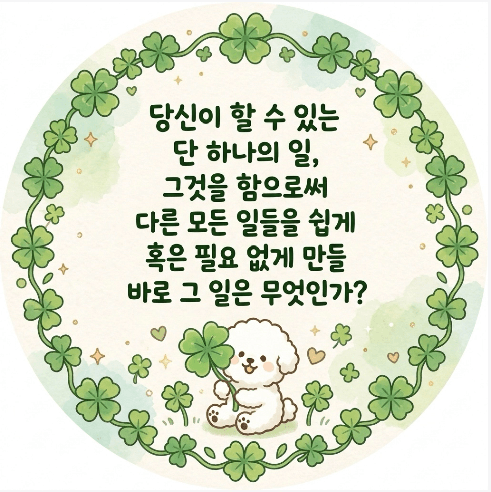 (p142)#์ด์ ํ์ ์ง๋ฌธ: 1. โ๋น์ ์ด ํ ์ ์๋ ๋จ ํ๋์ ์ผโ 2. โ๊ทธ ์ผ์ ํจ์ผ๋ก์จโ 3. โ๋ค๋ฅธ ๋ชจ๋ ์ผ๋ค์ ์ฝ๊ฒ ํน์ ํ์ ์๊ฒ ๋ง๋คโ(๋ฐ๋ก ๊ทธ ์ผ์ ๋ฌด์์ธ๊ฐ?)