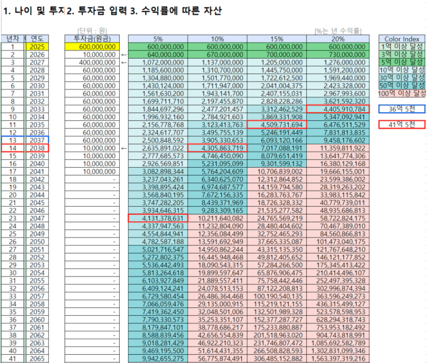 - 수익률 15%: 58세 (2035년)