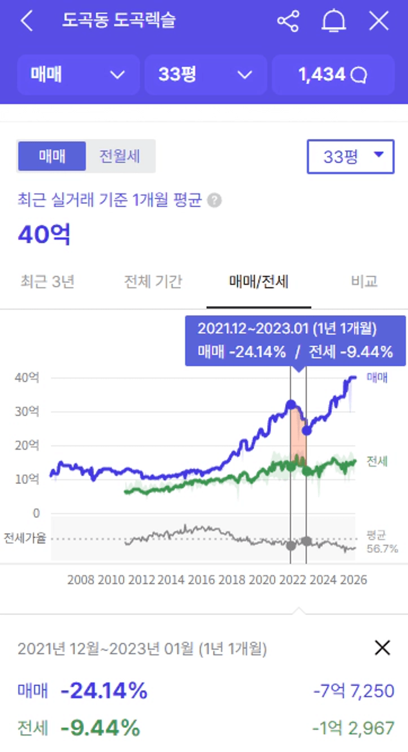 강남 아파트들의 매매가 마져 고꾸라지던 시기였으니