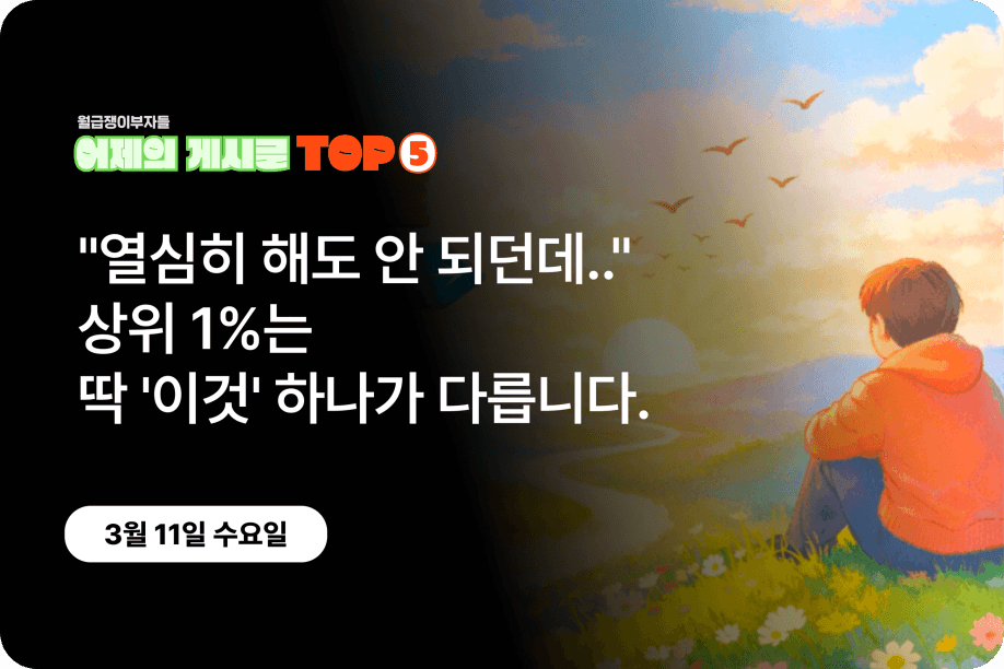 가장 반응이 좋았던 인기글만 담아 ‘어제의 게시글’ TOP5를 소개합니다.