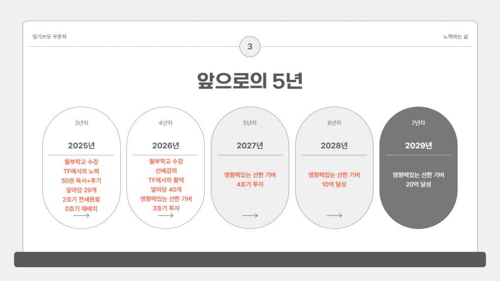 매 달, 매 주, 매일의 쌓임이 없으면 그냥 종잇조각일 뿐이에요.