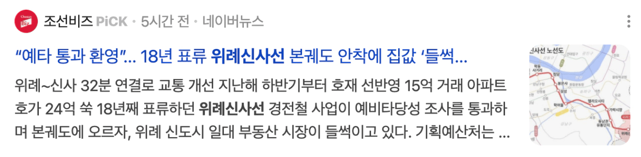 특히 위례신사선 예타 통과 소식 이후에는
