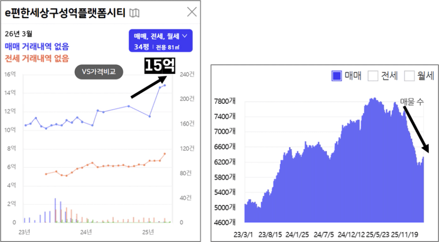 최근 몇달 사이 약 2억 상승하며, 현재 호가가 15억 수준까지 올라와있습니다.