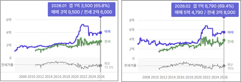 2억이라는 가격이 벌어지는 것을 볼 수 있습니다.