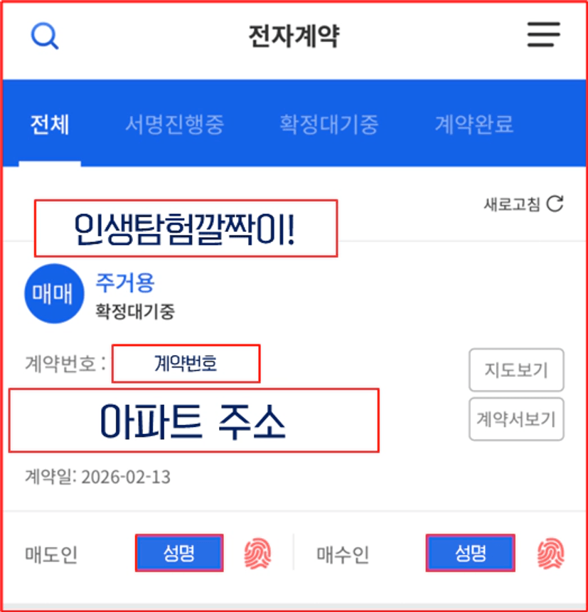 매도자와 매수자는 전자계약 어플에 로그인하여 계약서를 확인하게 됩니다.