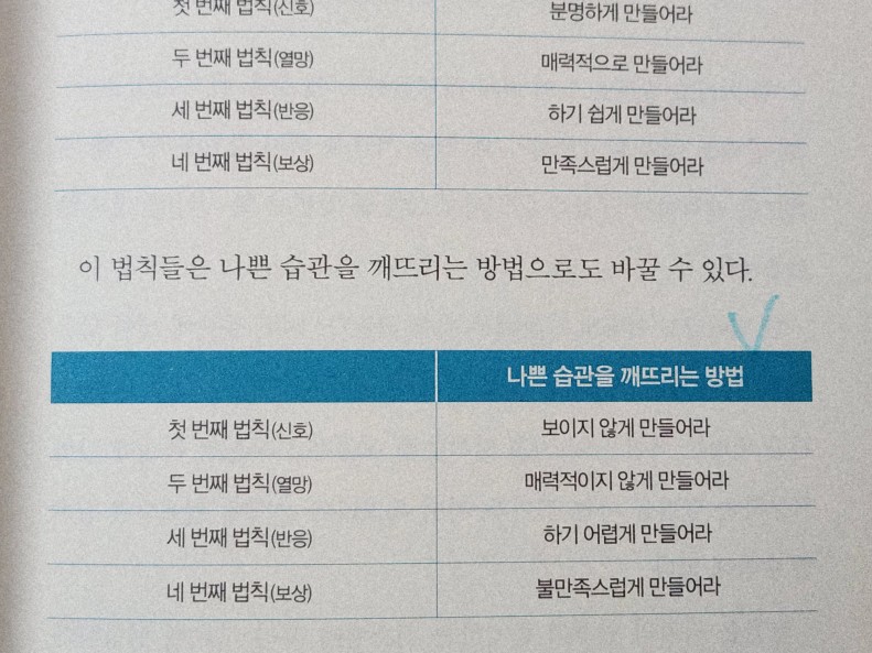 좋은 습관을 불러오는 신호들은 분명하게 드러나게 하고 나쁜 습관을 일으키는 신호들은 보이지 않게 하라.