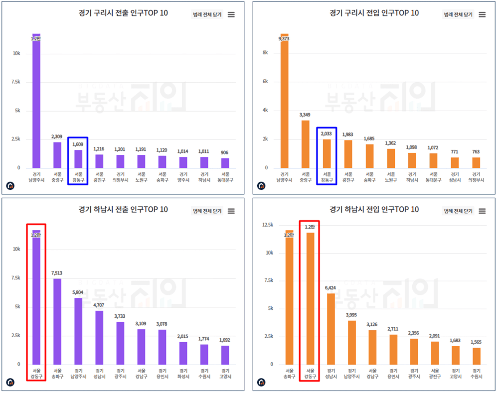 하남시와 강동구의 인구이동이 압도적으로 많은 것을 확인 할 수 있는데요.