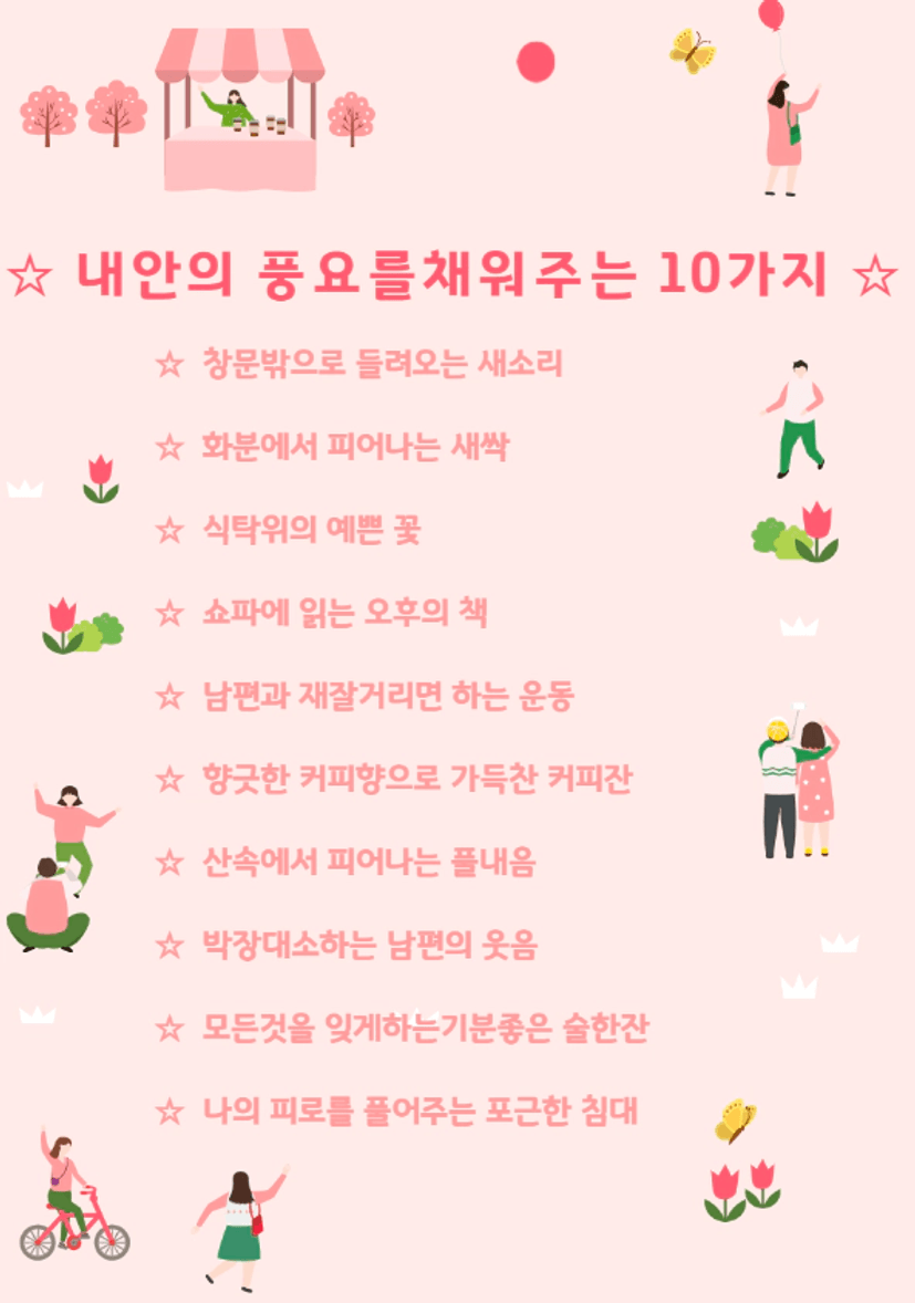 행복 10계명을 꺼내보며 내가 원하는 삶과 독립된 삶에 대해 다시 깨닫는 시간이였다.