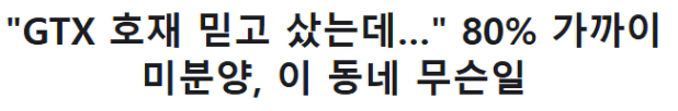 이렇게 GTX-C 노선의 착공이 기한 없이 연기되면서 ‘역세권 프리미엄’을 내세웠던 양주 일대 신규 분양 단지들이 잇따라 미분양으로 남고 있다고 합니다.