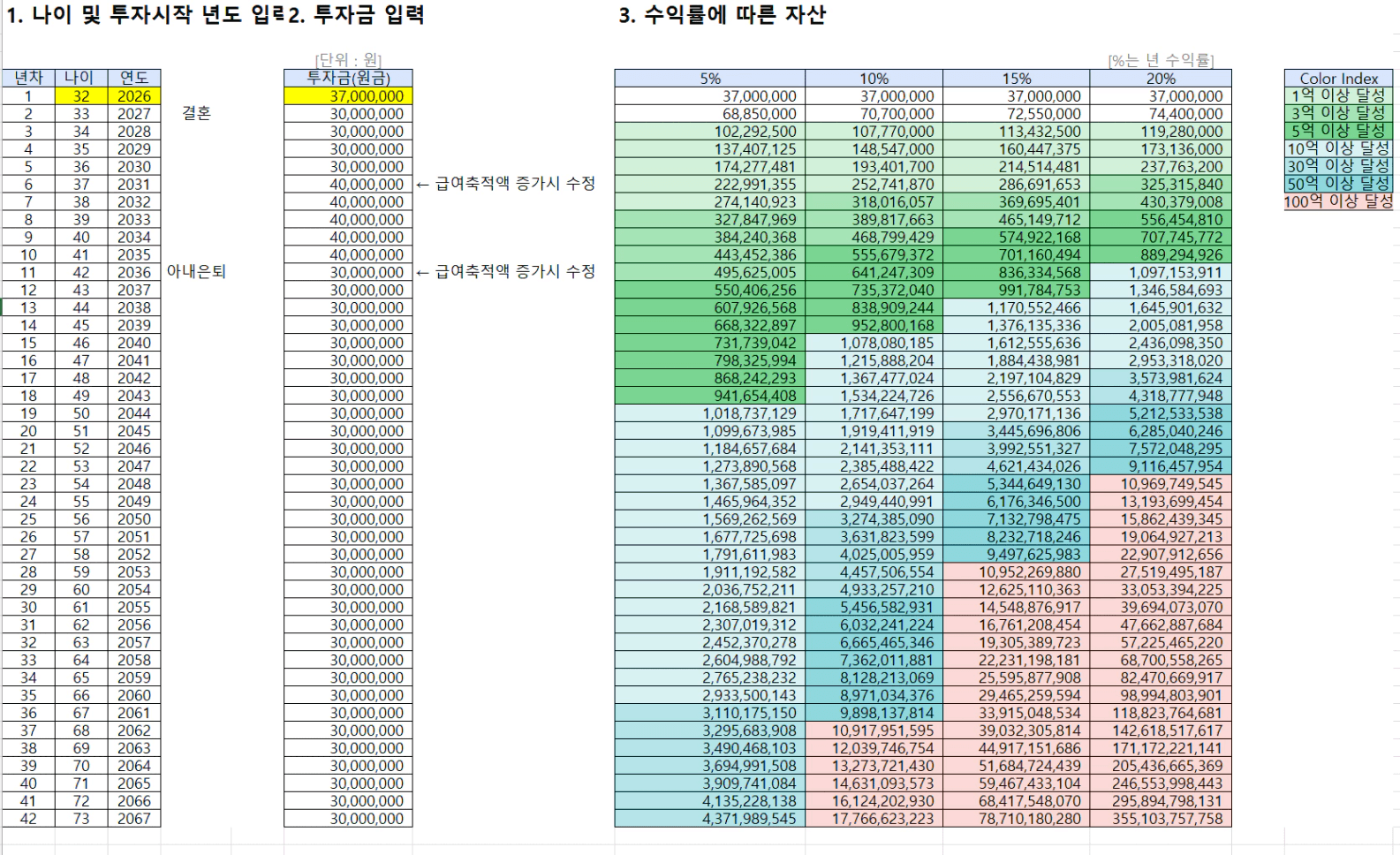 - 수익률 20%: 47세 (2041년)