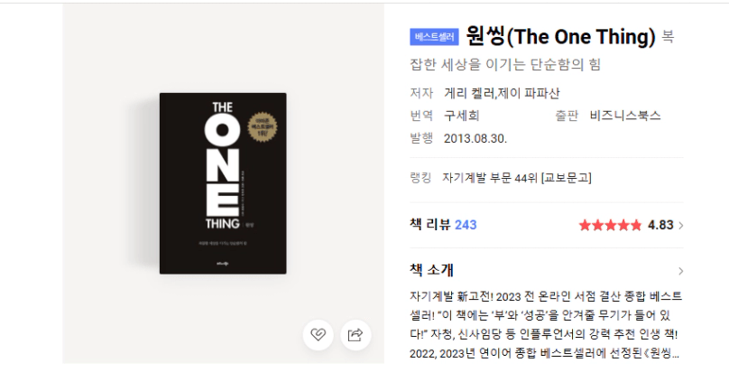 #목적의식 #우선순위 #단 하나 #크고 구체적인 목표 #탁월한 성과 #1만 시간의 법칙 #파레토 법칙 #작은성공 #중요한일