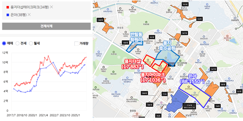 이 구역의 재건축 단지들만 살펴보더라도 입지가치도 뛰어나 창원 전체 시세를 리딩합니다.
