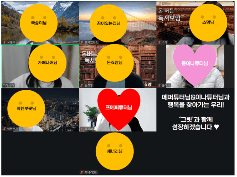 그리고 독서모임 내내 따뜻한 미소로 경청해주신 윤이나 튜터님께