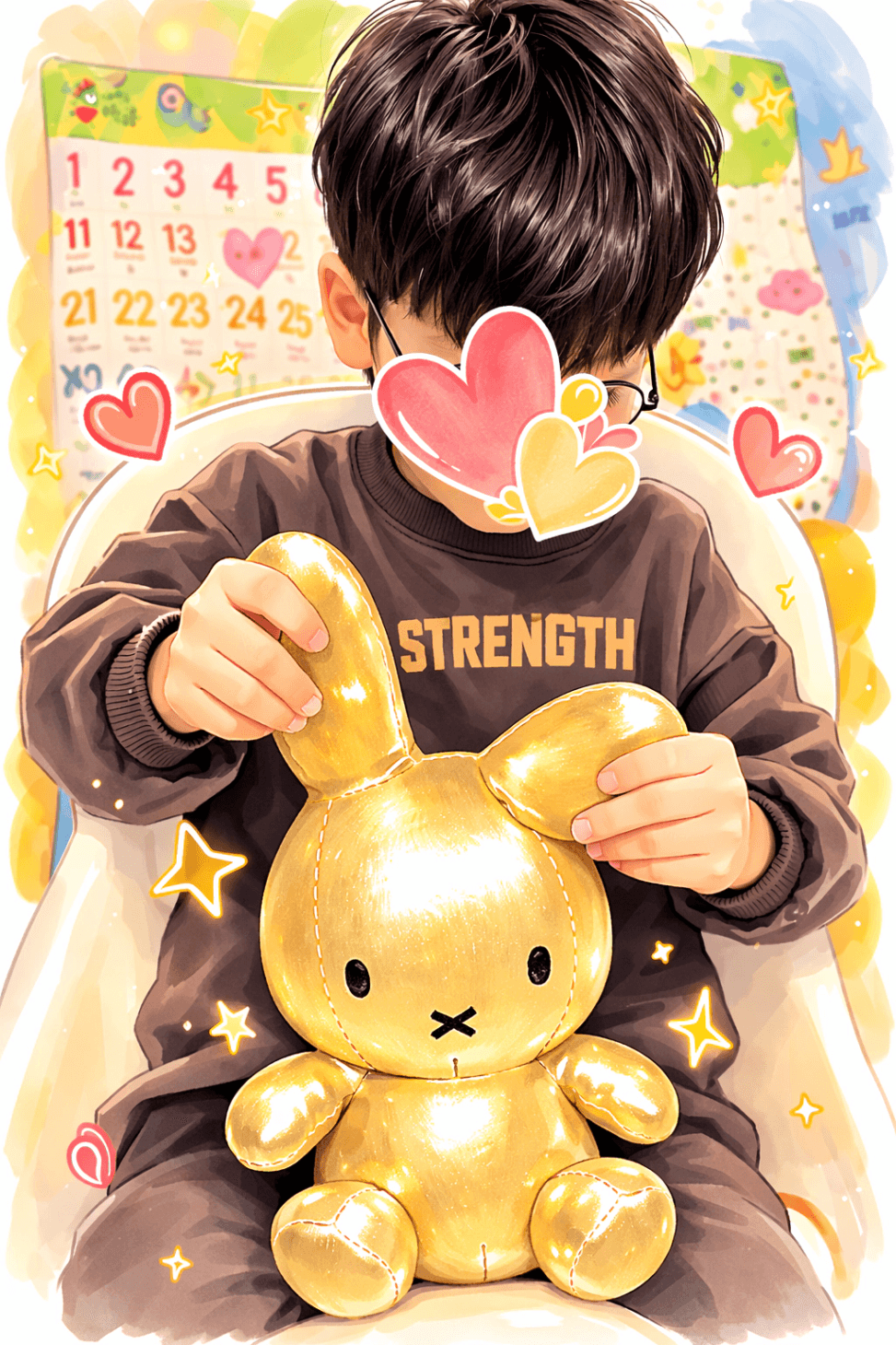 똥손인 제가 황금색 미피 토끼 인형을 뽑았습니다.