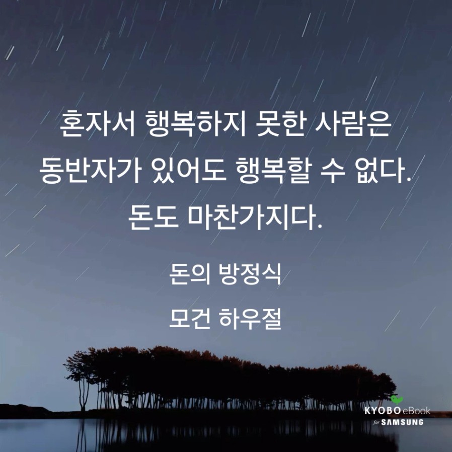 그리고 “혼자서 행복하지 못한 사람은 동반자가 있어도 행복할 수 없다. 돈도 마찬가지다.”라는 문장을 통해 돈 자체가 행복을 만들어주는 것은 아니라는 점도 다시 생각하게 되었다. 결국 돈은 삶을 보조하는 수단일 뿐이며, 돈을 대하는 태도와 삶의 균형이 더 중요하다는 메시지를 느낄 수 있었다.