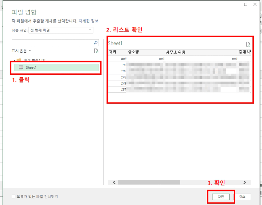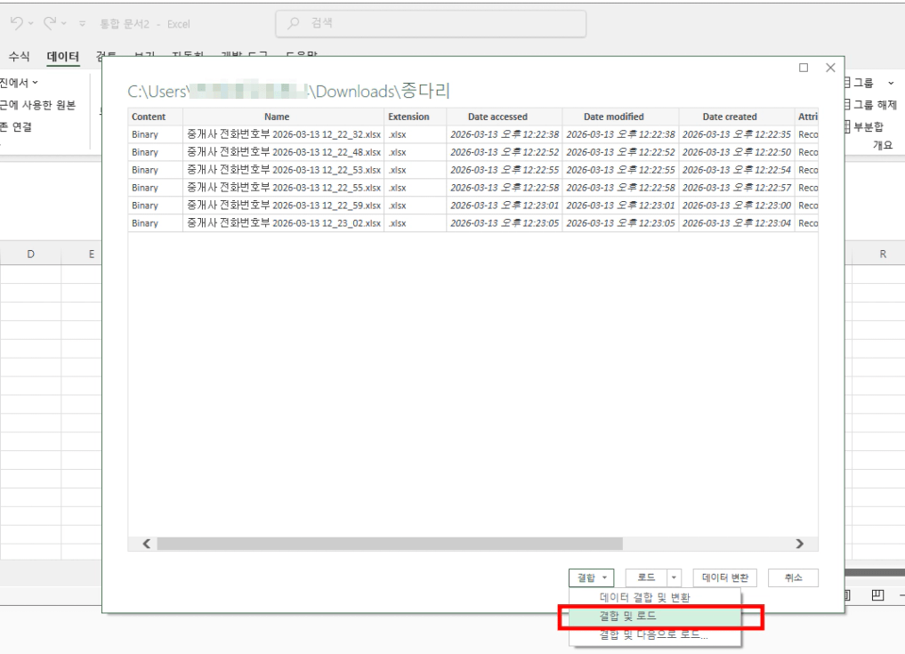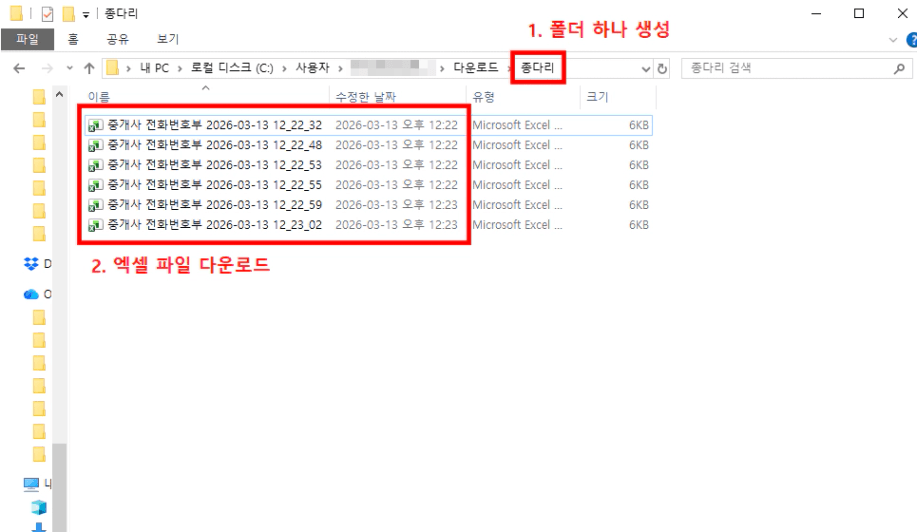 이 과정을 거치면 중개사 리스트가 하나의 파일로 합쳐집니다.