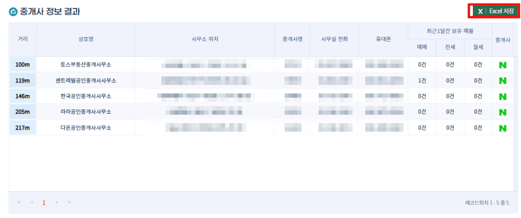 무료 기준 (반경 500m / 중개사무소 5개 이하)