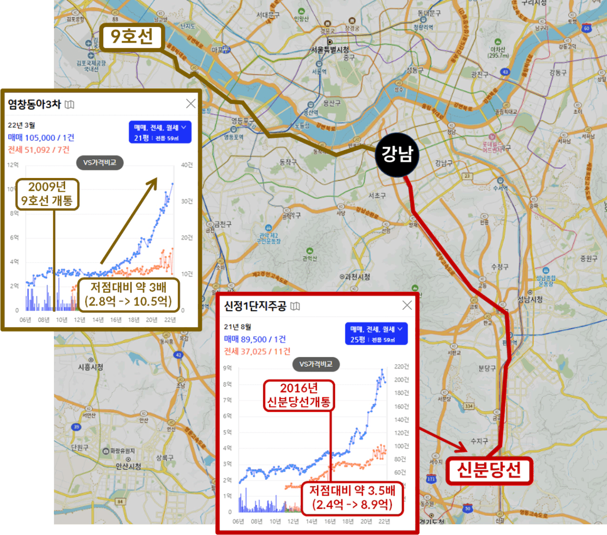 실제 수도권에서는 이렇게 교통 접근성이 향상되며 지역의 가치와 선호도가 크게 올라선 사례를 많이 볼 수 있습니다.