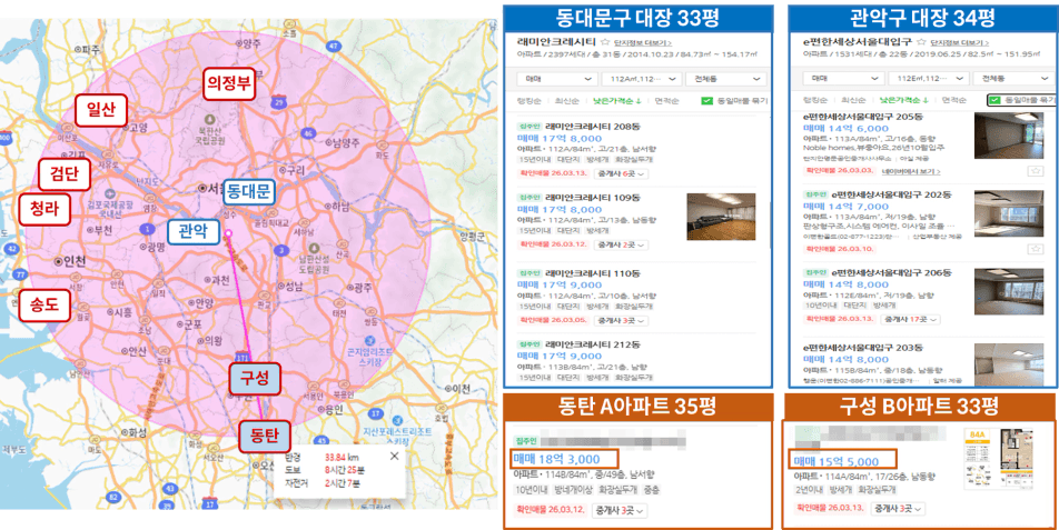 강남과의 거리 8.5km / 소요시간 25분인 동대문구의 대장 아파트가 17.8억으로 동탄 신축보다 저렴하고,