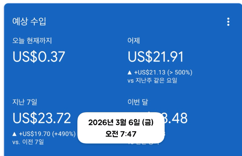 한 달전만 해도 1달러만 매일 찍자라는 목표였습니다!