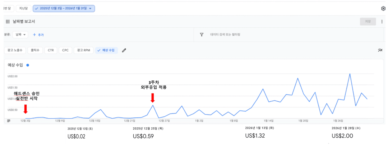 → 3주차 외부유입(23일 수강)적용 후 0.59달러
