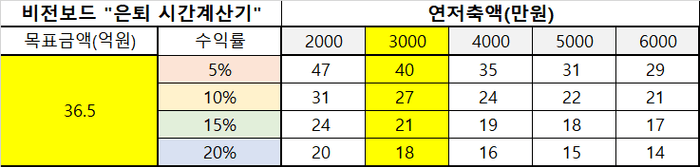 목표 36.5억 (현재 나이 36세 연저축액3,000만원)