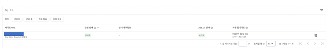 현재 아래 보이는 사진은 메인 도메인으로 이전에 승인 받았던 내역입니다.