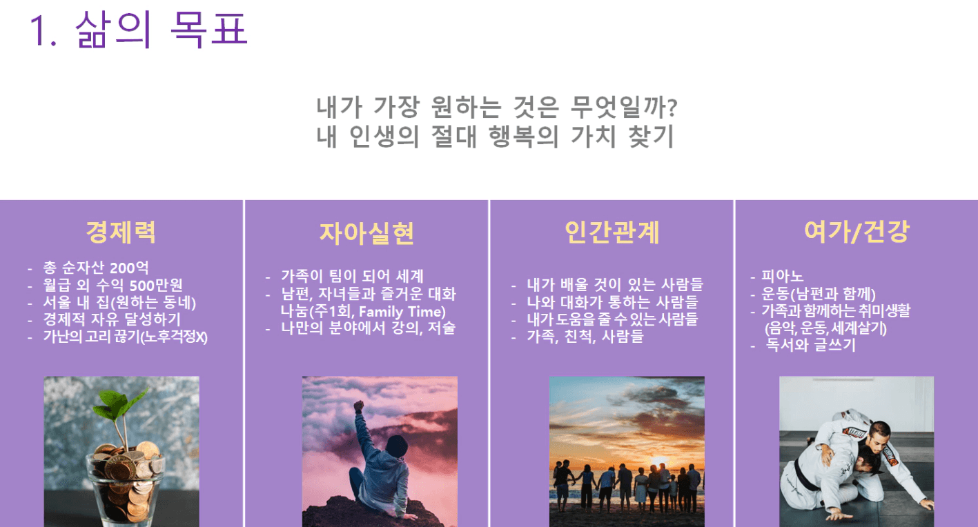-내가 잘 하는 분야에서 강의하고, 남편과 함께 책 쓰며 살기(자아실현)