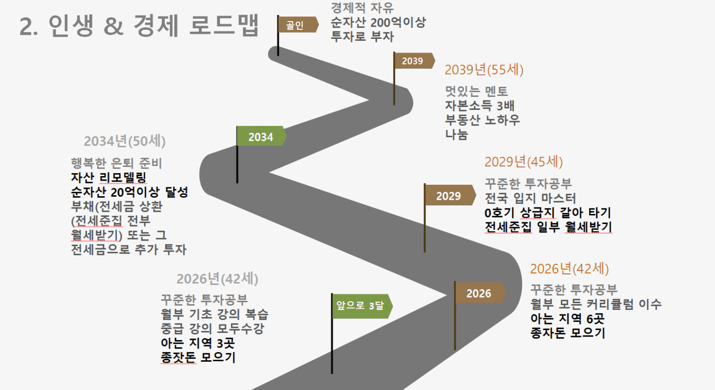그냥 차근차근 돈 벌고 모아서 점점 상급지로 옮겨가려고 했는데 부동산은 월급보다 훨씬 빠른 속도로 올랐고, 노후에는 무엇을 하고 어떻게 살지를 생각해보면, 내가 하고 싶은 것을 하고 사려면 경제적 여유와 자유가 있어야 할 것 같았어요. (월부에 들어와서 처음 강의를 듣지만 남편과 늘 나누었던 이야기들이라 공감이 많이가요.)