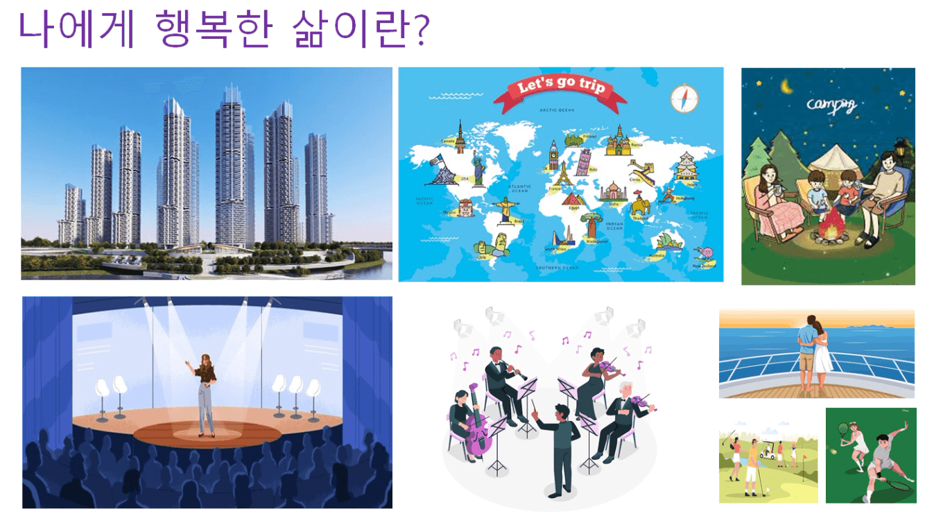 내가 이루고 싶은 목표를 이미지로 떠올려보았습니다.