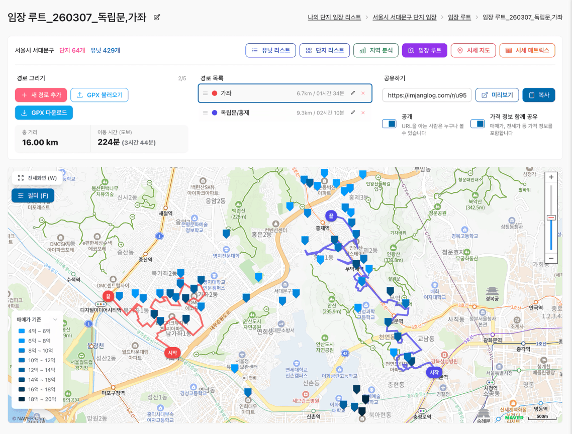 이대로 사용하시면  임장 루트는 물론, 단지 정보와 시세도 공유 가능하고