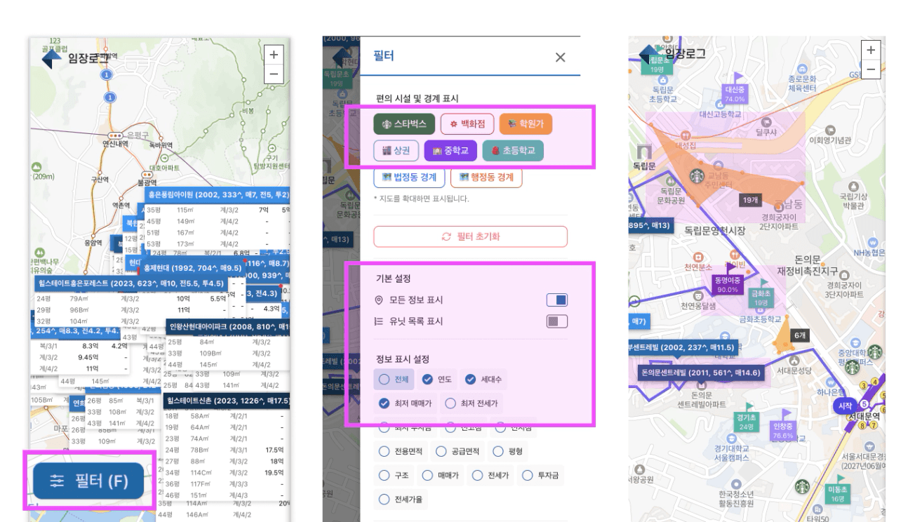 저는 주로  가운데 설정처럼 간단하게 만들고, 지도를 보면서 임장합니다.