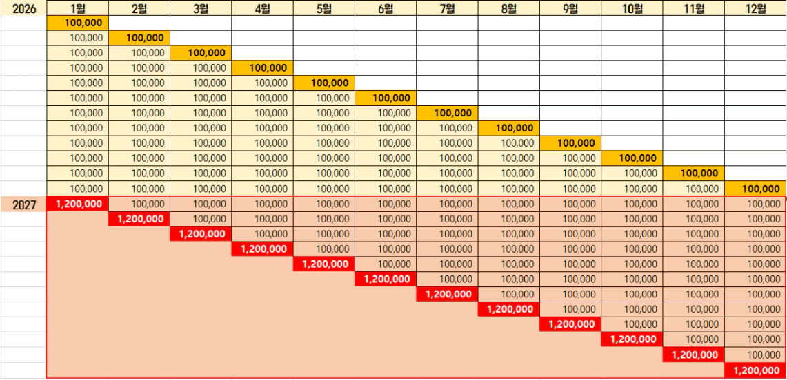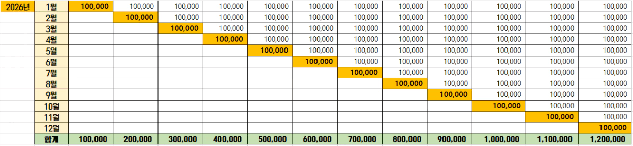 우리는 2026년부터 계속 매월 10만원씩 적금해 둔 12개의 통장이 있습니다