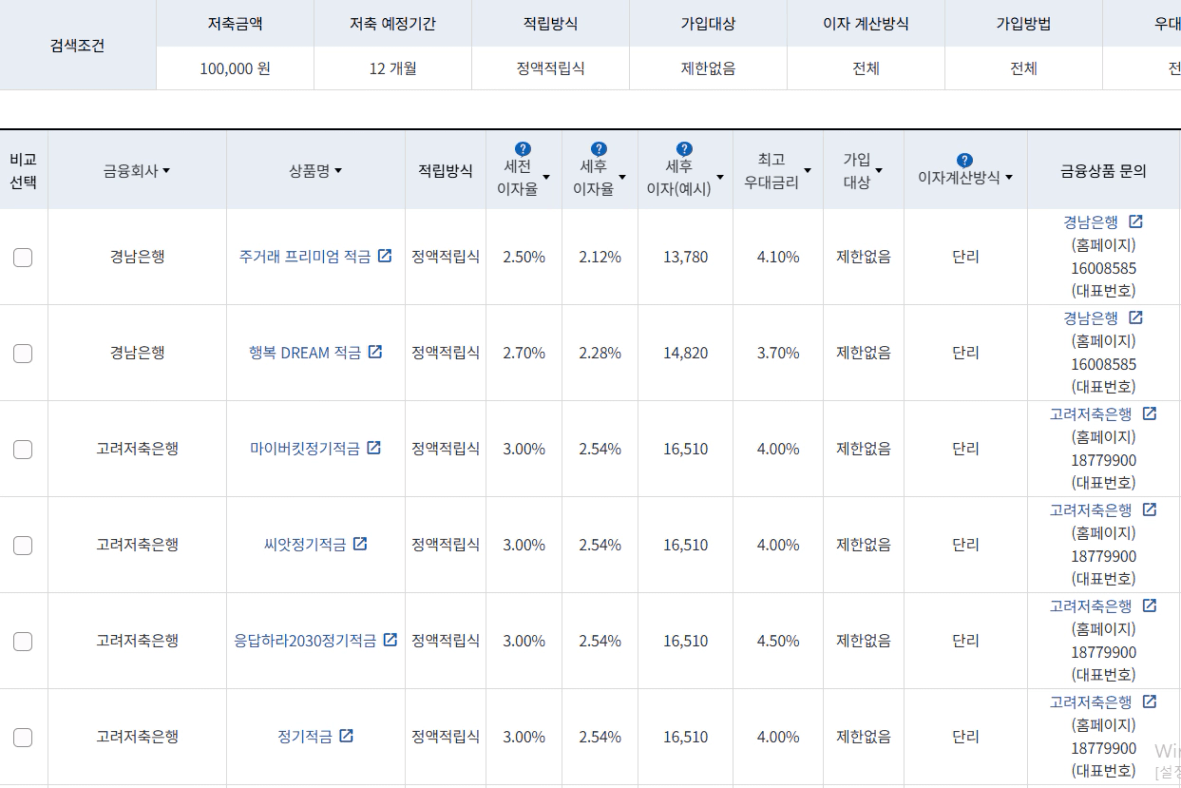 금융상품을 선택할 때는 ‘금융상품한눈에’라는 사이트를 이용하시면 편리합니다.