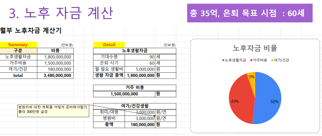 필요한 노후 자금 합계 ▶ 총 35억