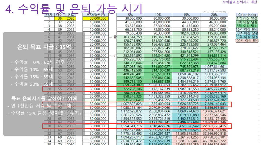 STEP4. 수익률에 따른 은퇴 가능 나이