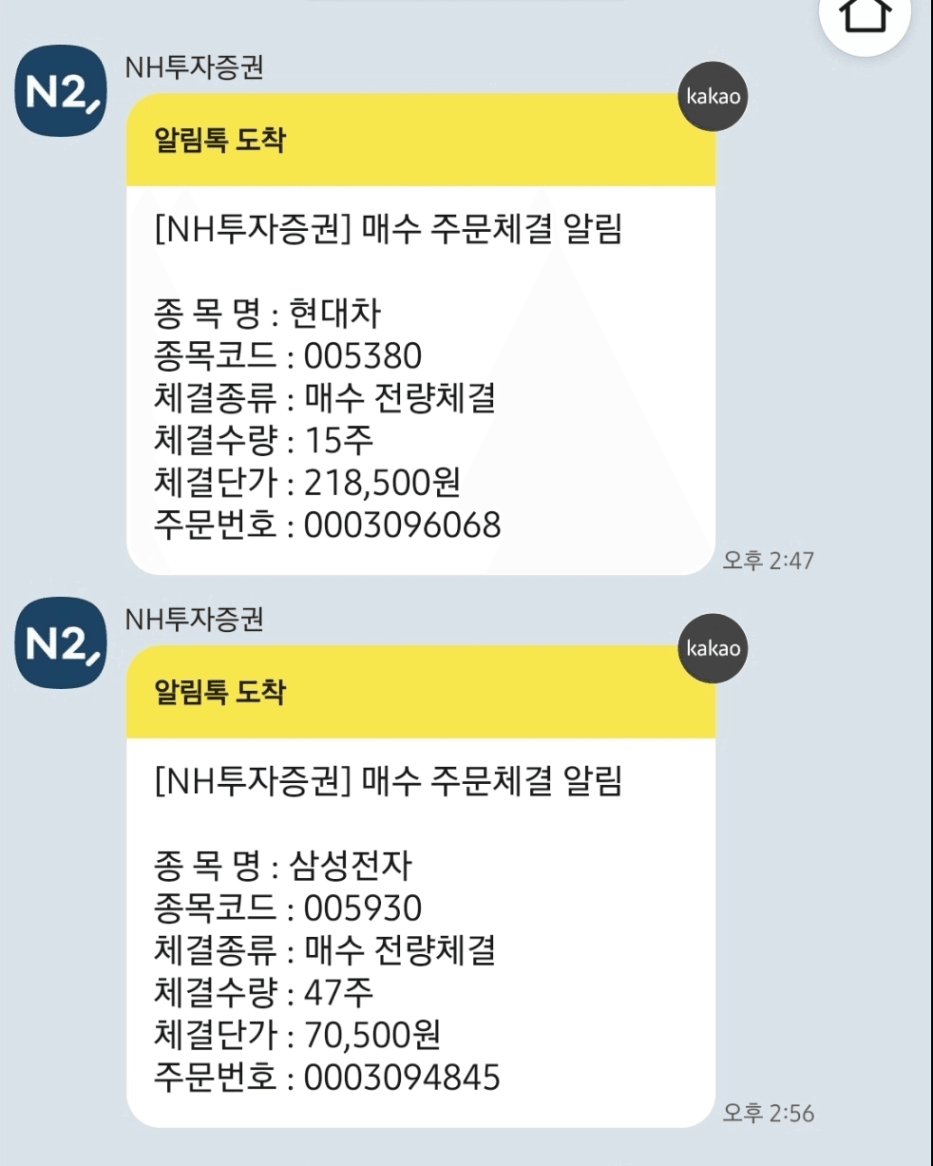 저는 작년에 삼성전자 주식을 약 7만원대에, 현대차 주식을 약 21만원대에 매수했습니다.