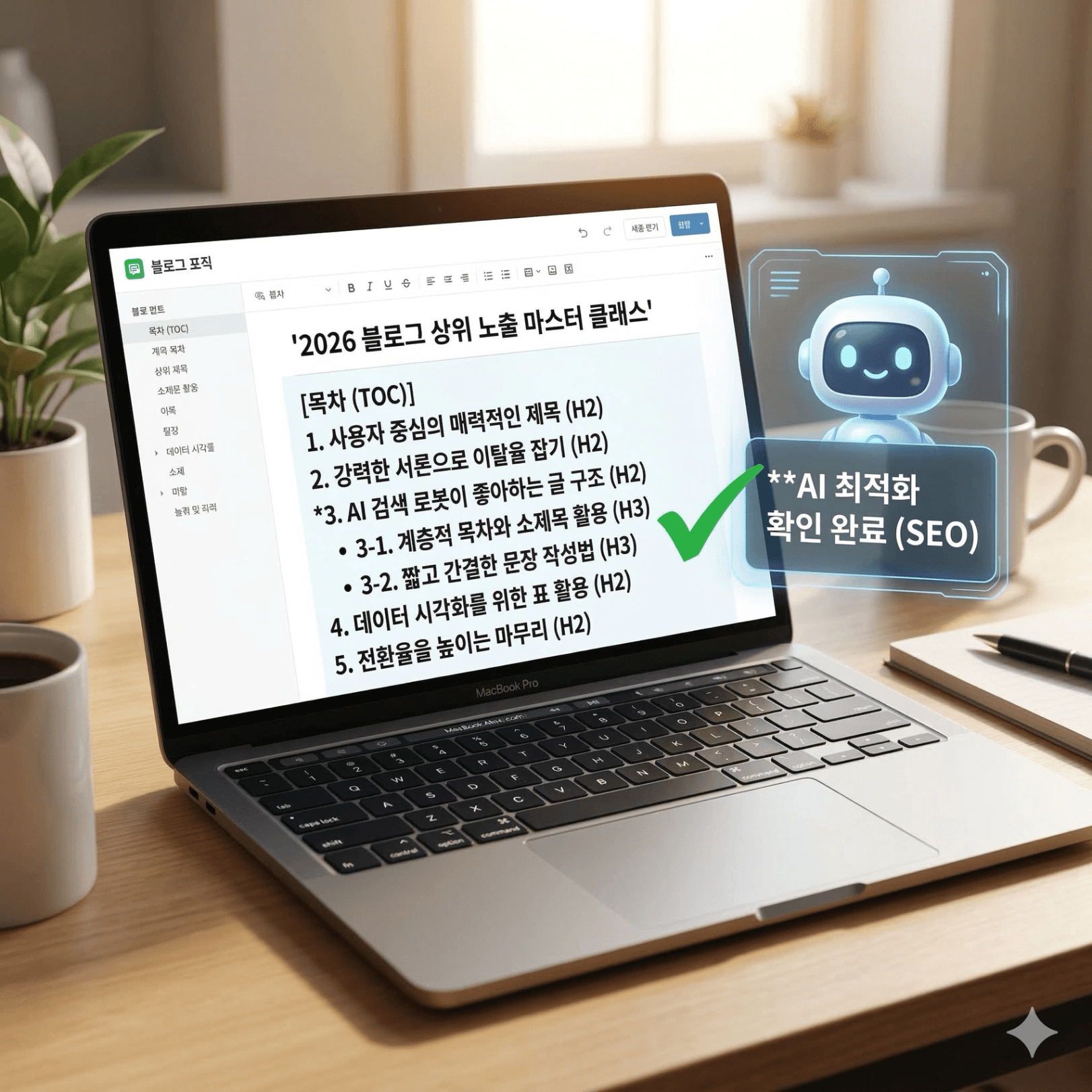 2026년 블로그 상위노출은 더 이상 운이 아닙니다. 철저히 계산된 구조와 독자 중심의 가치 전달이 답입니다. 위 전략을 오늘 작성할 포스팅에 바로 적용해 보세요. 결과는 숫자로 나타날 것입니다.