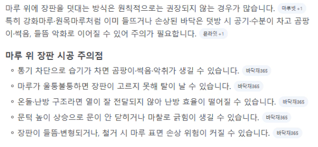 그 당시 철거를 하지 않고 마루위에 장판 덧방을 할 경우, 마루가 썩을 수 있음을 알고 있었지만,