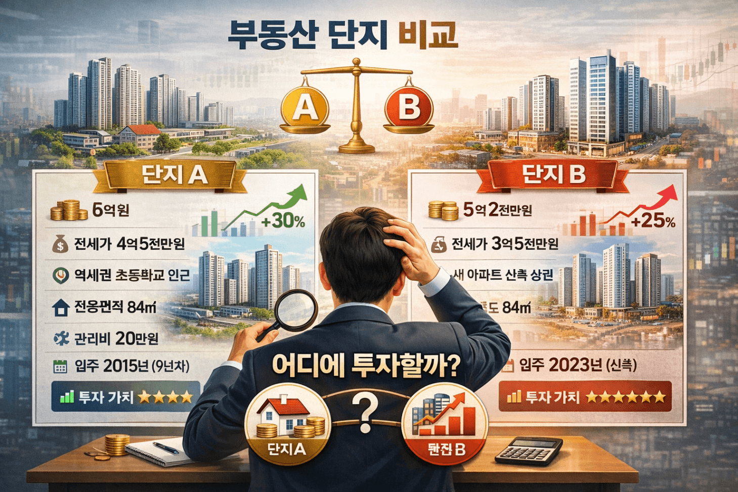 투자금 약 5천만 원으로 매수 가능한 두 아파트가 있었습니다.