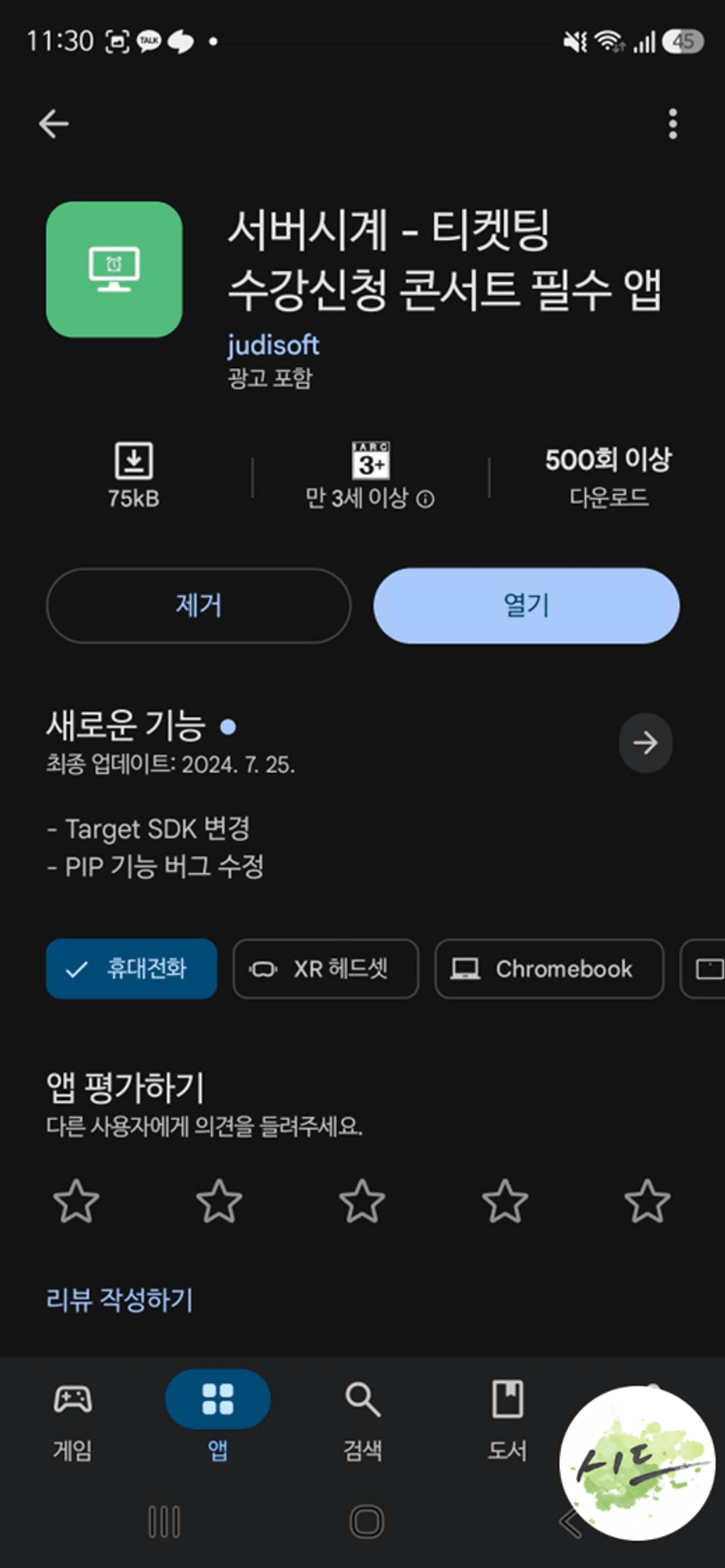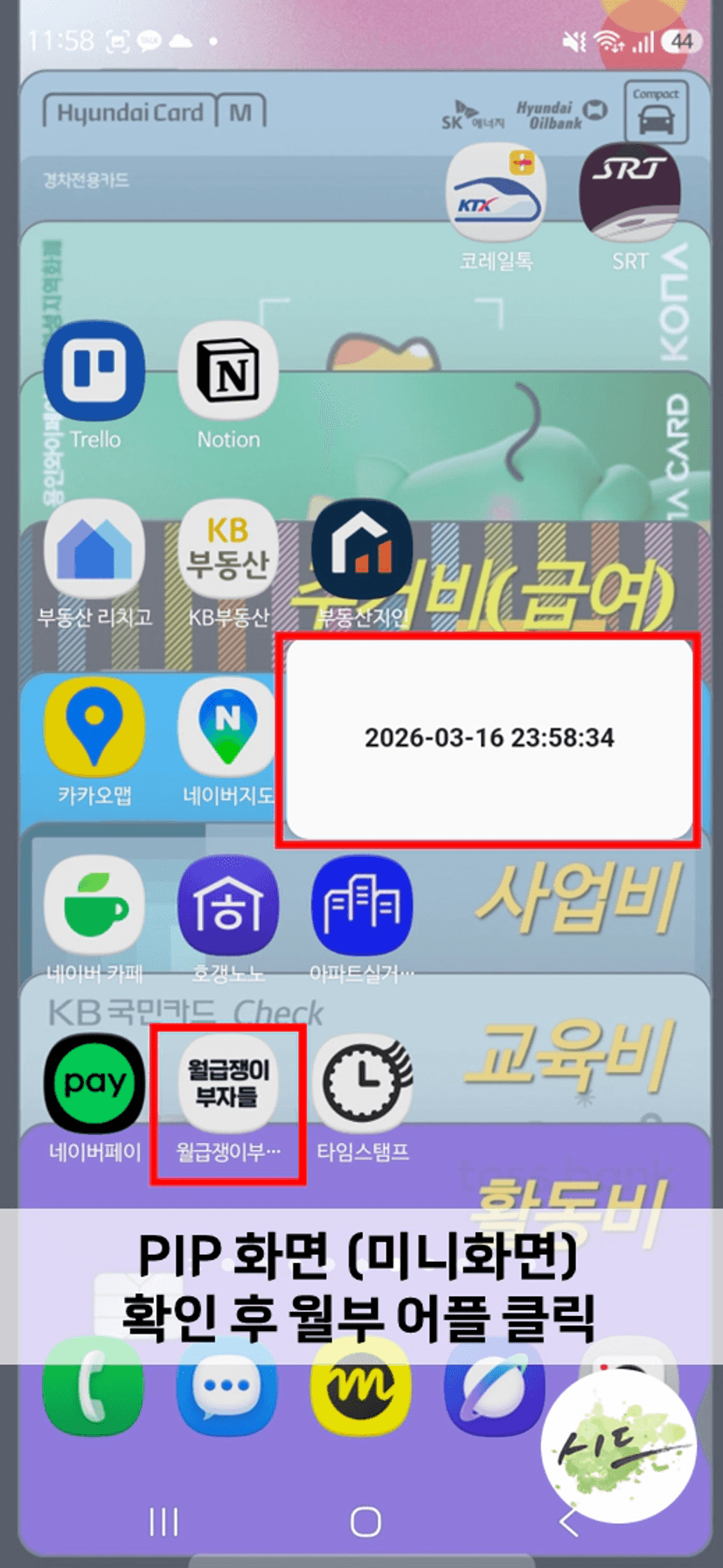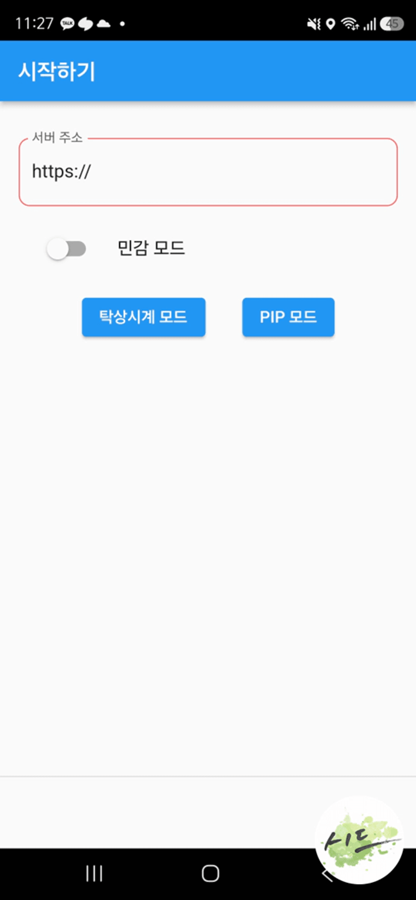 ※ PIP 모드는 다른 어플 화면 위에서 시간을 확인할 수 있는 모드 입니다.